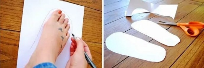 1. Обведите стопу на бумаге с учетом небольшого запаса. Вырежьте по контуру.