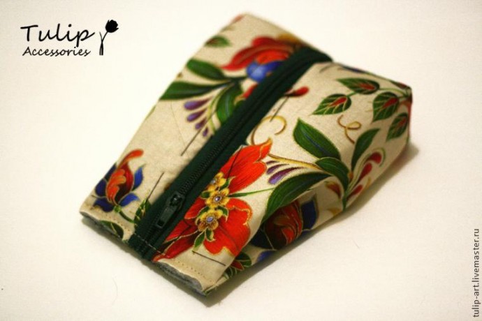 Косметичка своими рукамиНеобычная форма выкройки делает эту косметичку очень удобной.