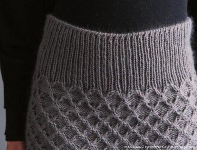 7-й ряд - 2 изнаночные, 1 петля провязывается вместе с висящими над ней двумя накидами изнаночной, 1 петля снимается вместе с накидом, 2 изнаночные, 1 петля снимается вместе с накидом, 1 петли провязываются вместе с висящими над ней двумя накидами изнаночной, 2 изнаночные и т.д. до конца ряда.