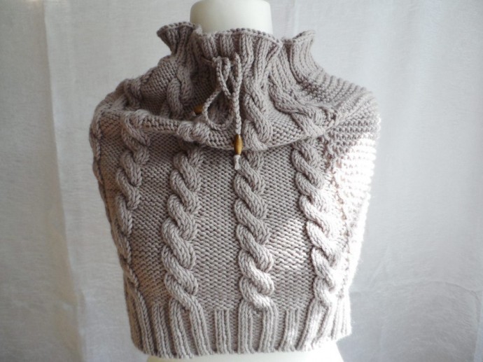 Он очень теплый, мягкий и уютный, выполняет роль шарфа, но не парит, не болтается между ног, а также его можно использовать и как головной убор (незаменимый зимний головной убор для тех, кто не любит носить шапки и не хочет портить прическу).