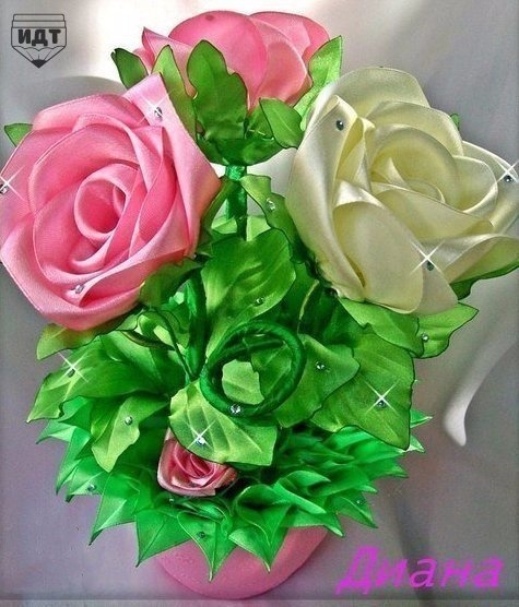 Розы из лентывсе розы из лент хороши.Но эти хороши особенно.