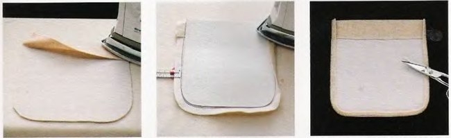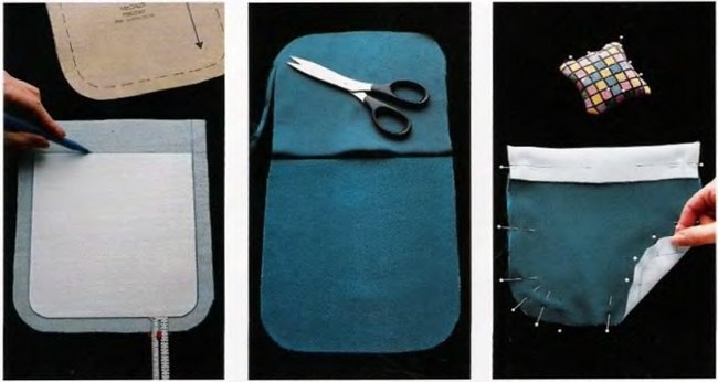 Карманы: мастер-классВыпустите подкладочную декоративную ткань на 2-3 см на лицевую сторону.