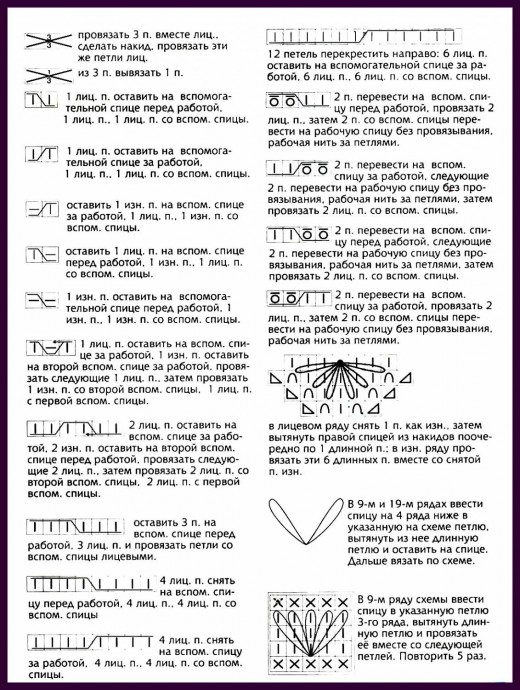 Здравствуйте, так хочется описание узоров, почему то ни где нет условных обозначений. ведь есть и начинающие, этого ни кто не учел.