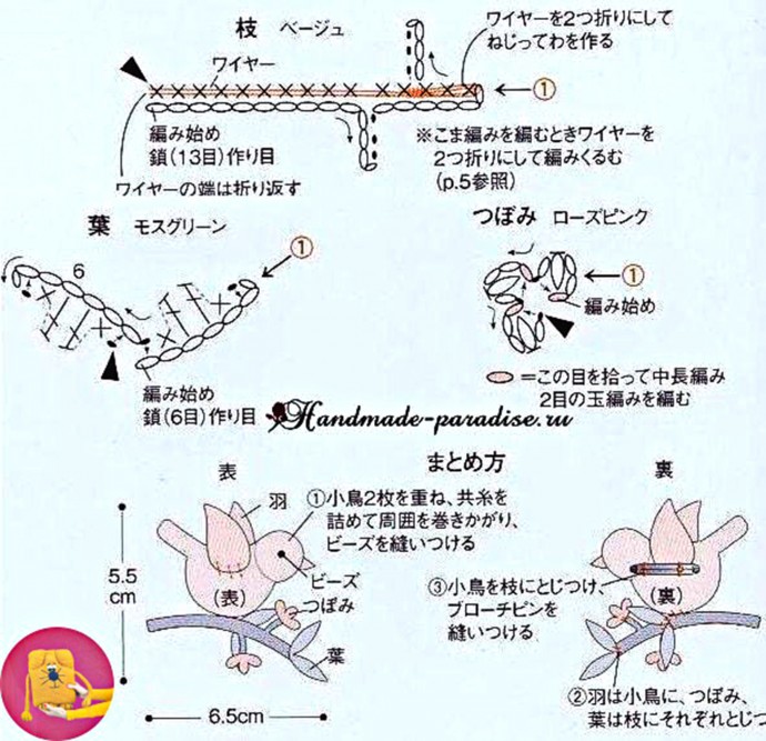 Птички из проволокиПтички из проволоки дополнены ярким бисером.
