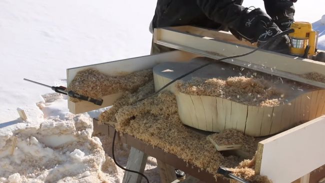 В завершении автор проходится ручным рубанком, а также выполняет шлифовку при помощи орбитальной машины.