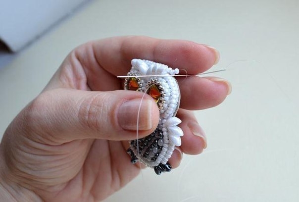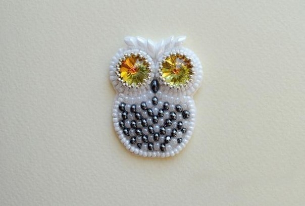 Детальные шаги, как вышить брошь Полярная сова из бисера
