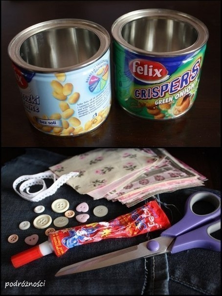 ============================== Материалы и инструменты: - жестяные банки - картонка - ткань и ленточки