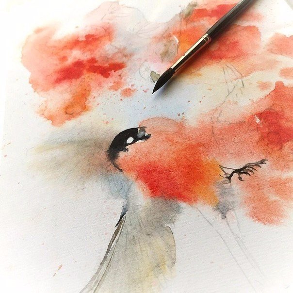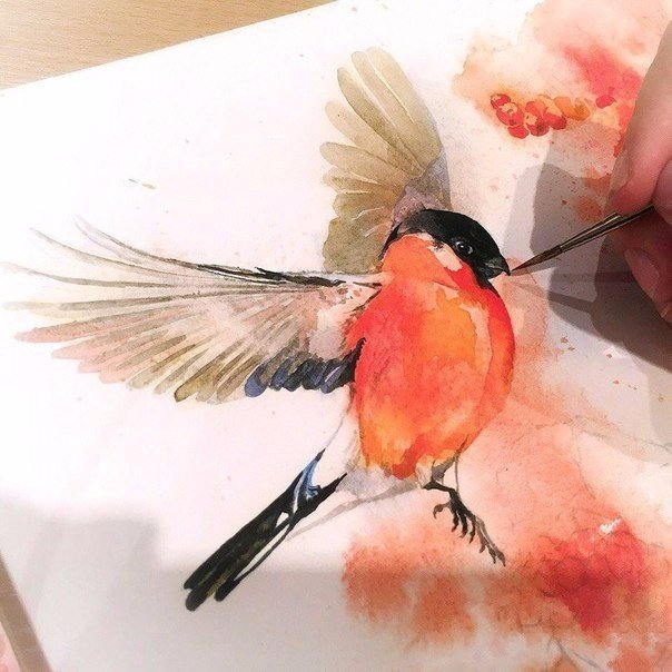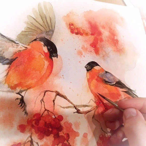 снегири акварелью