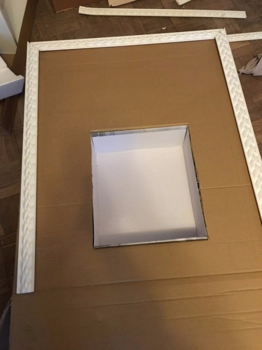 Декоративный камин из картона своими рукамиДля такого камина можно использовать и старые коробки, например.