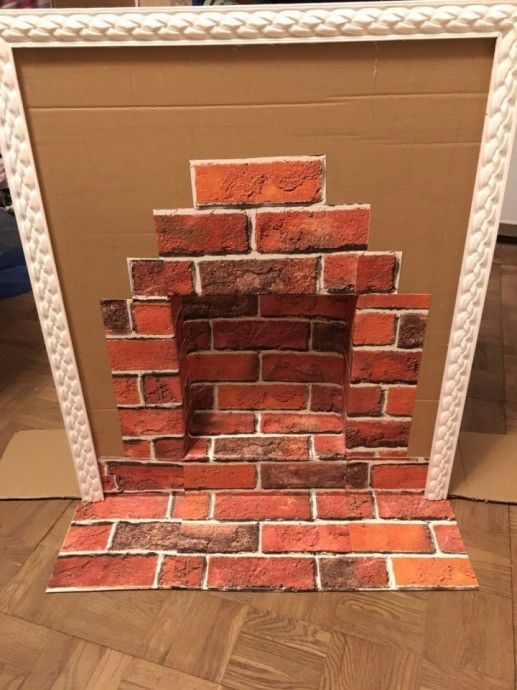 Красивый фальш-камин из коробокКрасивый фальш-камин из коробок не даст возможности подкидывать дровишки для тепла, но сделает вечера уютнее.