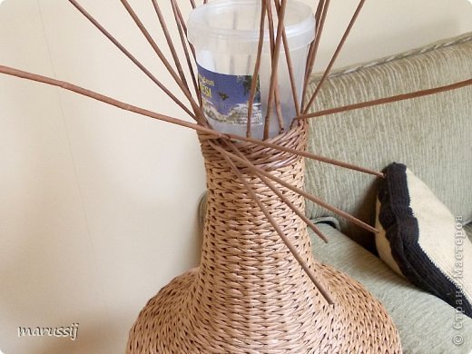 Я такую вазу для своей сестры делала, дошла уже до верха, еще бы сантиметров 20 и готова была-бы., она мне такую подлость сделала, что мне уже ничего не хотелось для нее делать.Стояла она недоделанная у меня полгода, а потом я взяла ее и сожгла.Больше крупных изделий не делаю.И то не кому-нибудь, а чисто для своего удовольствия.Плетение -это моя релаксация.А когда закончишь-удовольствия море.Не судите меня строго, но мы все рукодельницы немного помешанные.
