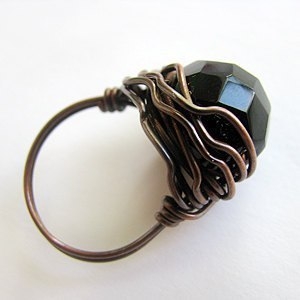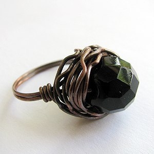 Кольцо из жемчуга и проволоки.