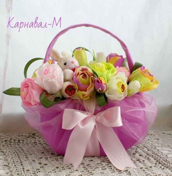 И вот долгожданный вариант корзины или сумочки для таких конфетных цветов.