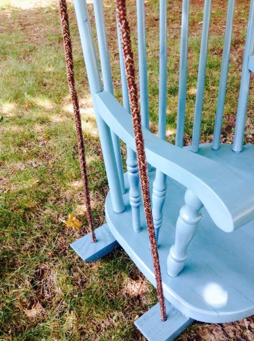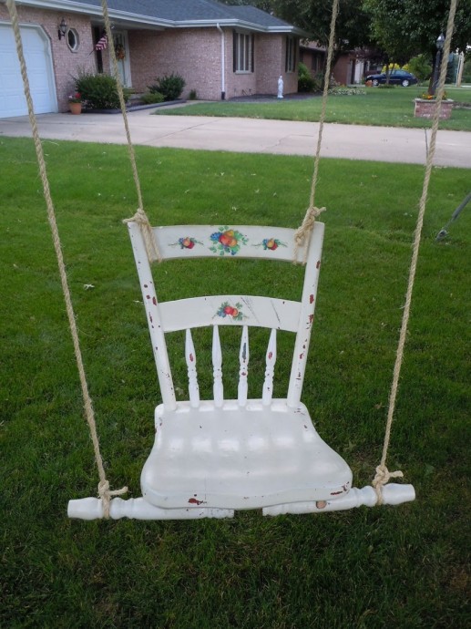 Вот отличный пример того, как старый стул можно превратить в удобные качели.