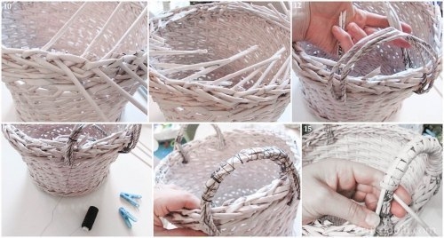 Корзинка: плетение из газетТакие изделия нуждаются в качественной обработке лаком для более длительной сохранности.