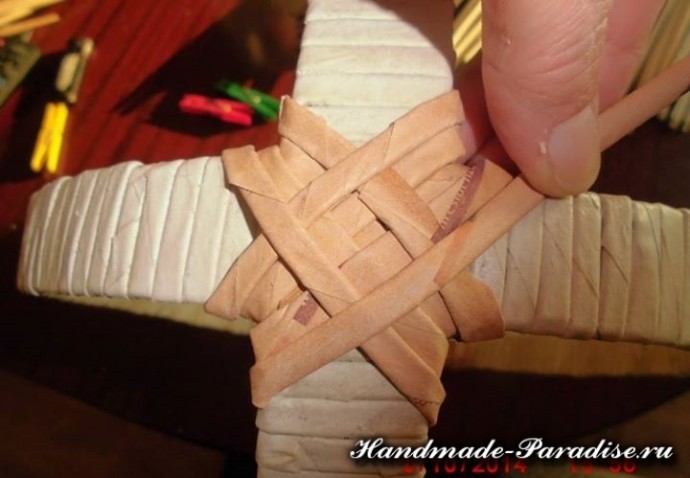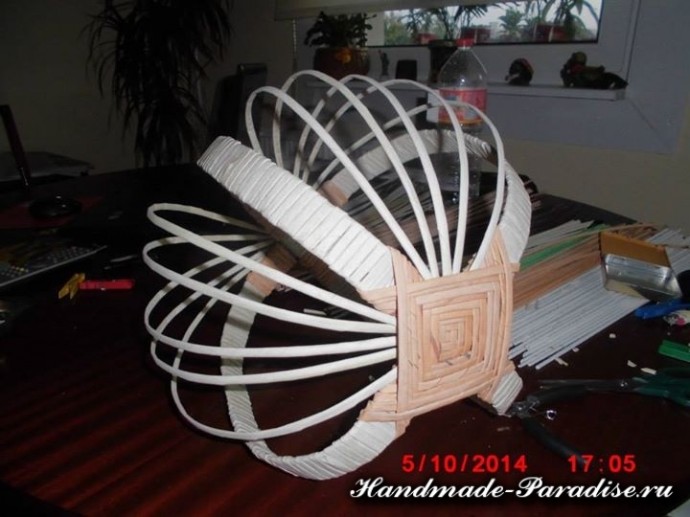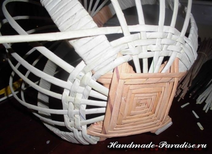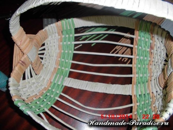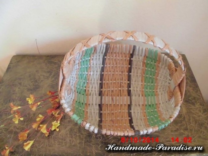 Лукошко из газетных трубочек может стать отличной вазочкой для фруктов или рукоделия.