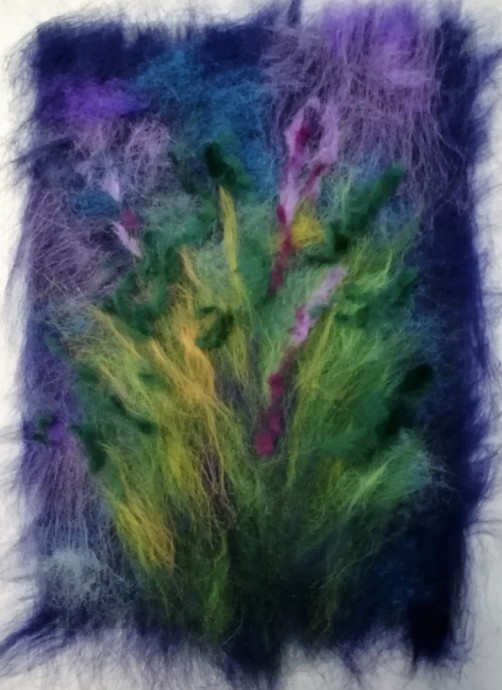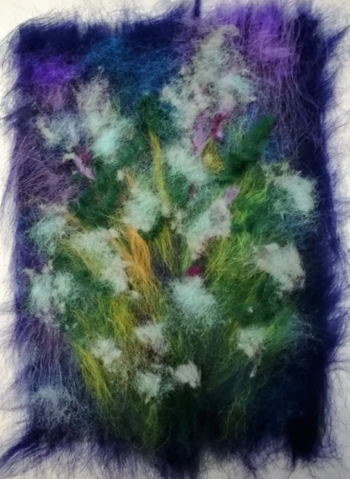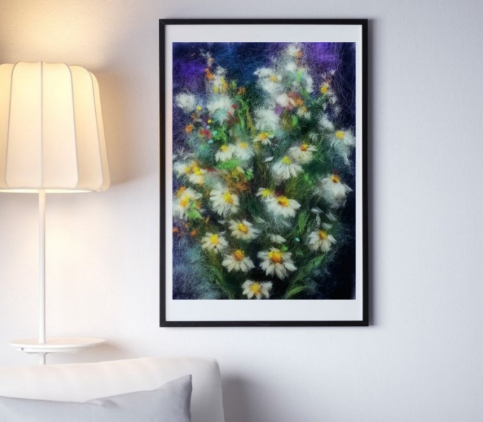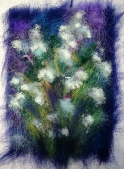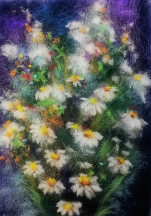 Шерстяная живопись: букет ромашек