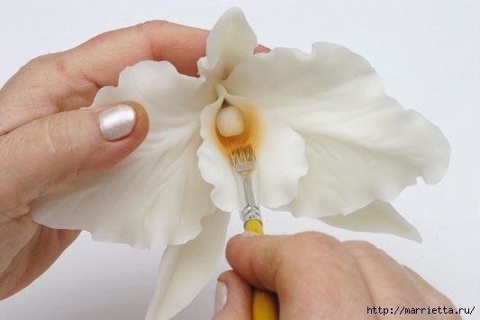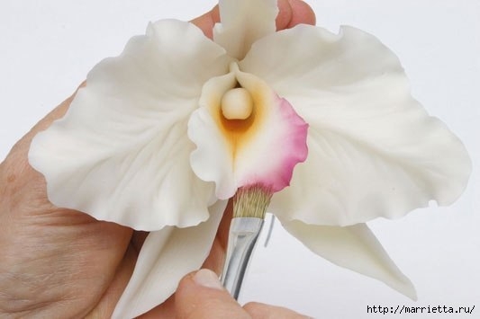 ОрхидеяТакую орхидею можно слепить как из мастики для украшения торта, так и из полимерной глины.