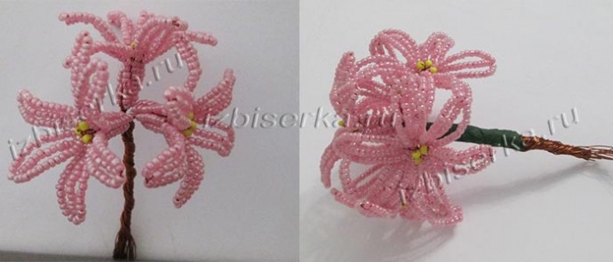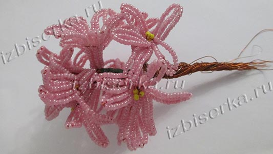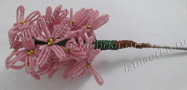 - Бисер трёх цветов: зелёный, розовый и маленько жёлтого. Размер нужен №10 (чешский) или №12 (китайский).