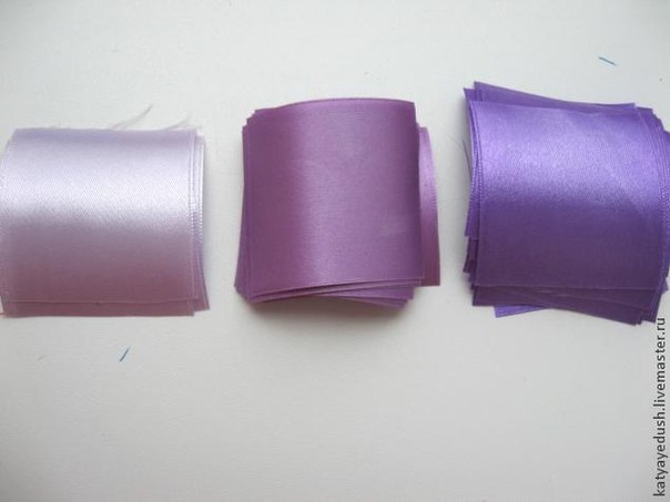 Роза в технике канзаши: мастер-класс, часть 1Автор Кудрякова Ольга.1. Из атласной ленты красного цвета готовим заготовки длиной 5 см 9 штук и длиной 6 см 24 штуки2. Готовим лепестк...
