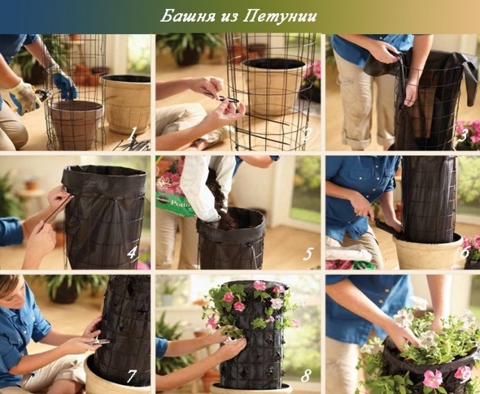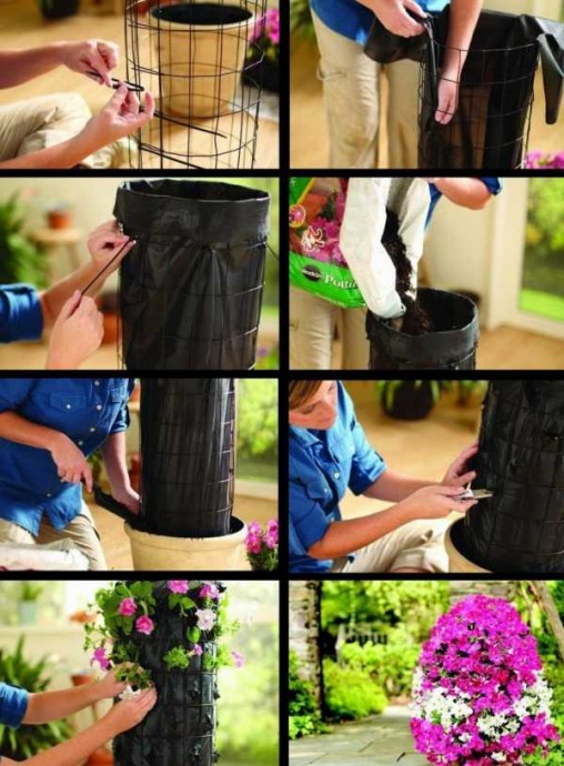 Я делала прошлым летом на даче из петуний. Все получилось и уход минимальный, типа «не забыла — полила». Ни от каких погодных условий не прятала