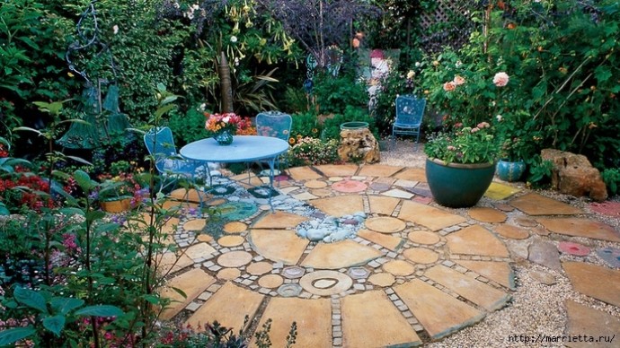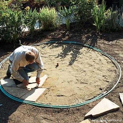 Думаю идея патио актуально для всех, кто имеет сад или огород. Вот только не понятен сам процесс. В круг насыпан песок и что потом? Осколки плитки просто укладываются на песок? Я знаю это довольно трудоемкий процесс. Нужен не только песок, но и другие ингридиенты плюс под патио нужно выкопать небольшой котлован хотя бы сантиметров 15-20 и тщательно выровнять его дно. И использовать бетон или цемент, иначе эти куски плит не будут держаться, а трава будет продолжать прорастать в расщелинах между плитами. Пожалуйста, выложите конкретный МК. Спасибо.