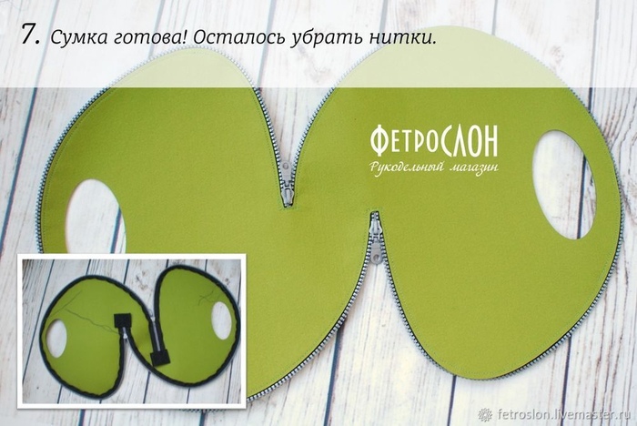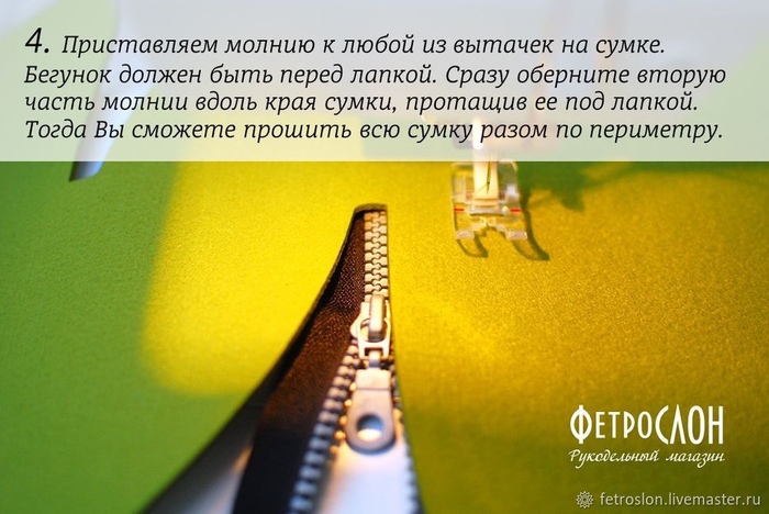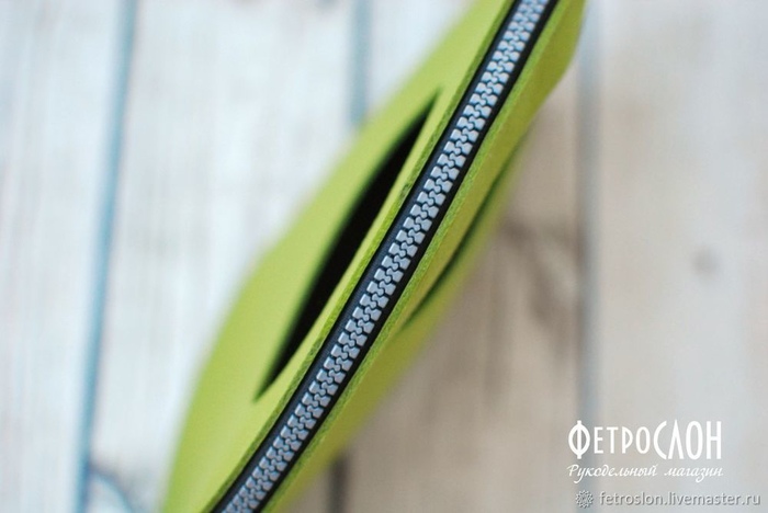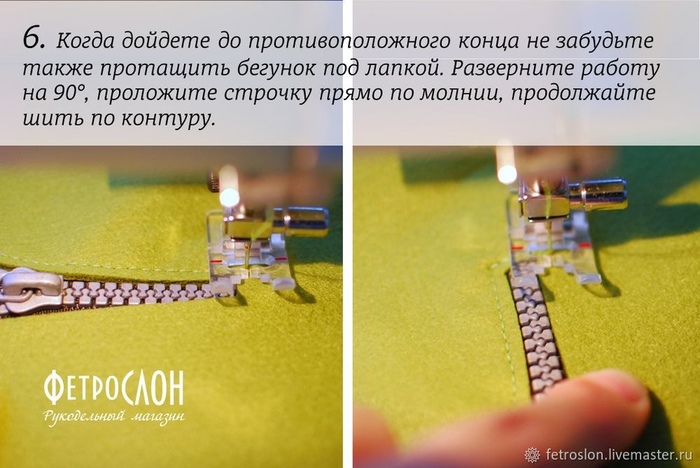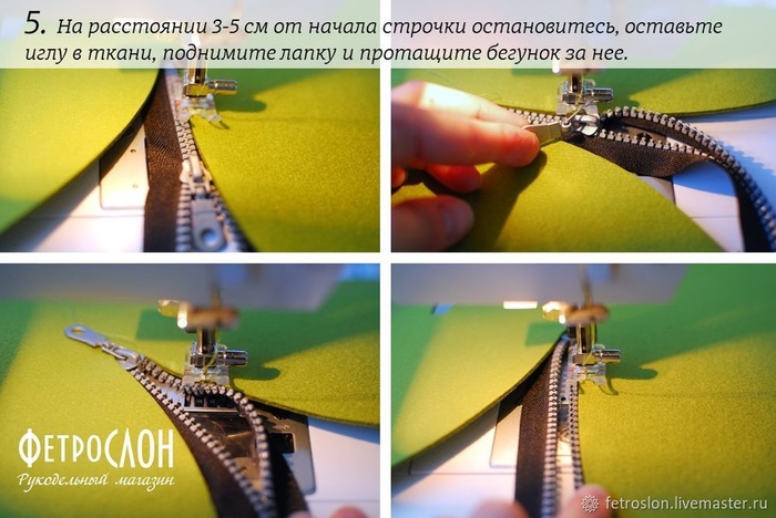 Еще важный момент — не забыть бегунок случайно под фетром, когда будете делать последний круг и замыкать строчку в том месте, где начинали :) Заранее достаньте его на видимое место.