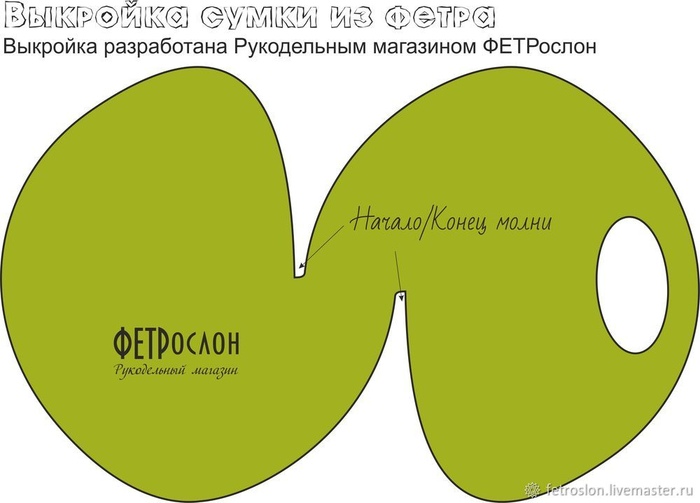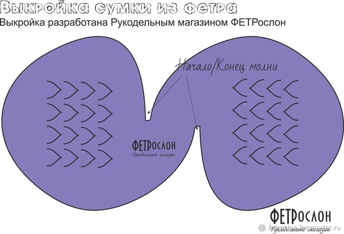 Я специально не помещала вторую прорезь для ручки на шаблон - ее сделаете самостоятельно после того как вошьете молнию — иначе прорезь может сместиться.