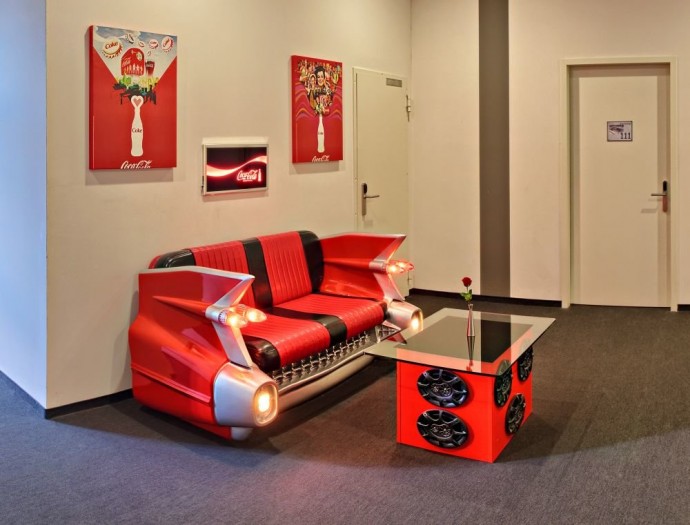 Автомобиль как элемент интерьера: дизайнерская мебель из старых машин появилась примерно в середине XX века и сейчас часто встречается в американских и европейских барах, офисах или кафе.