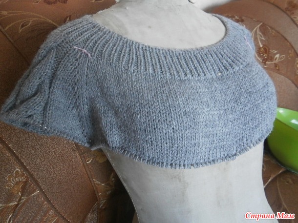Далее вяжем росток. Я начала укороченные ряды, провязав петли спинки, рукава и еще 2 петли переда, развернула... потом в каждом ряду добавляла по три петли.