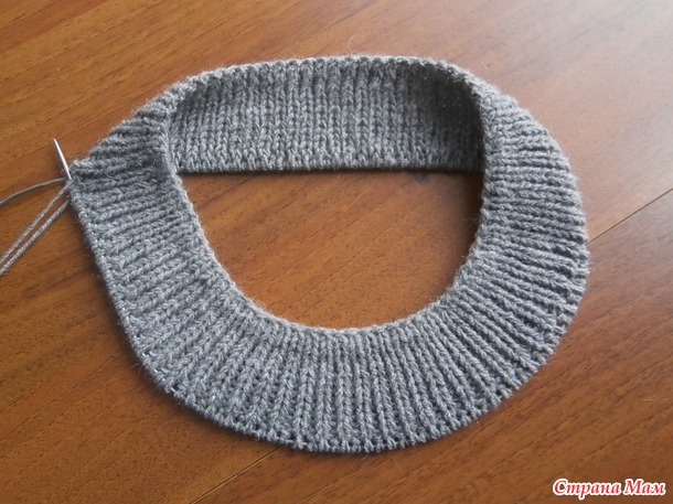 Вяжем кокетку, примеряем, перекладывая вязание на две пары спиц.