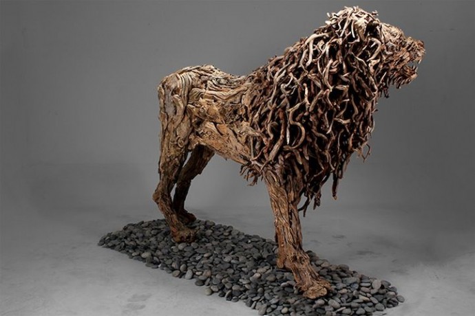 Фигуры зверей из кусков коры выглядят удивительно правдоподобно.