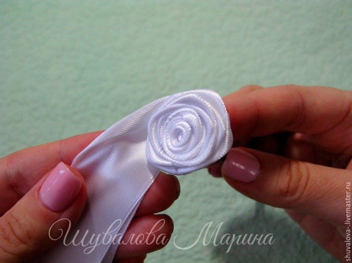 Делаем крученую розу из атласной ленты для использования в самых разных украшениях.