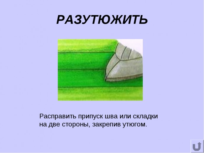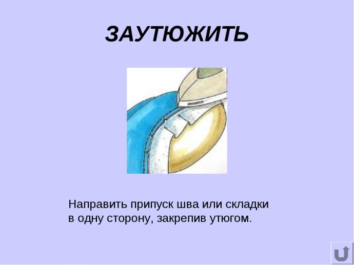 Приутюжить – уплотнить утюгом складки, швы и т.д.