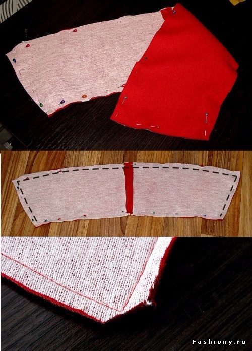 12. Выворачиваем подборта и обтачку. Затем зафиксируем с изделием при помощи клеевой паутинки.