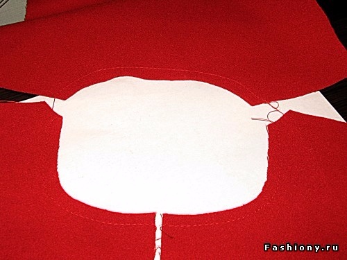 3. Необходимо проложить стабилизирующую строчку по горловине центральных частей переда и спинки.
