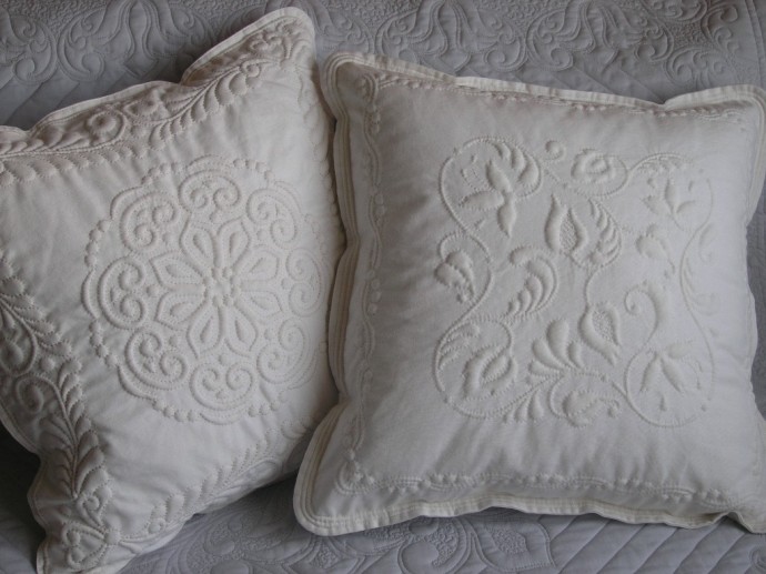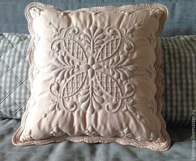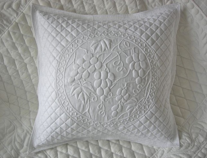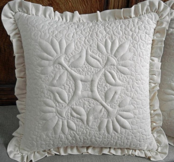Техника трапунто - объемная вышивка. В классической вариации на двухслойной основе вышиваются контуры основного рисунка: как правило, это цветы, перья, завитки, геометрические фигуры. Затем на подкладочном слое раздвигаются волокна ткани и набиваются элементы рисунка ватой или другим наполнителем. Кроме того, заполняется свободное пространство произвольной фоновой строчкой (линии, сетка, спирали, волны, эхо), которые при необходимости также наполняются. Данный процесс трудоемкий и требует максимальной усидчивости и внимательности.