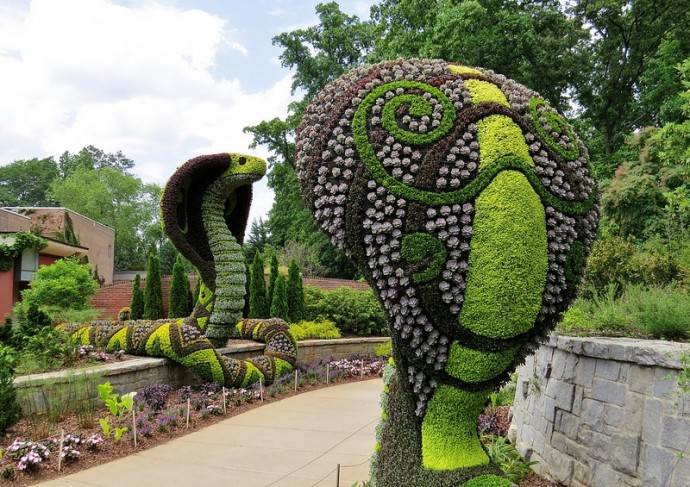 Ах какая красота! Это на только искусство, но и тяжелый труд. Вначале тексты надо вырастить до подходящего размера, а на это уходят годы, а потом уж только придавать им интересную форму. Знаю по своему опыту. Я только на 3 — ий год после покупки довольно приличного размера туй подстригаю и придаю им желаемую форму.