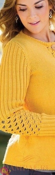 При вязании рукава прибавление петель по краям вязания выполняется следующим образом: 1 лицевая петля, 1 петлю прибавить из протяжки с наклоном влево или вправо в начале лицевых рядов; 1 петлю прибавить из протяжки с наклоном влево или вправо, 1 лицевая петля в конце лицевых рядов.