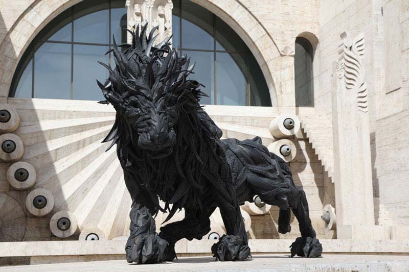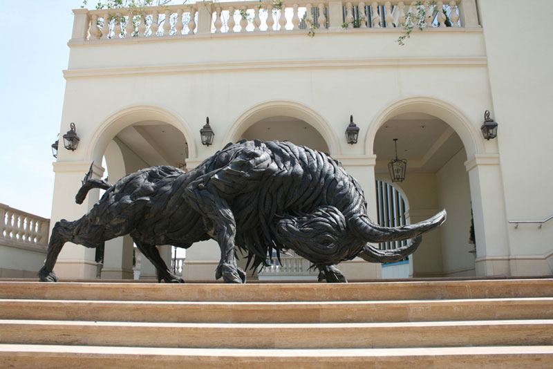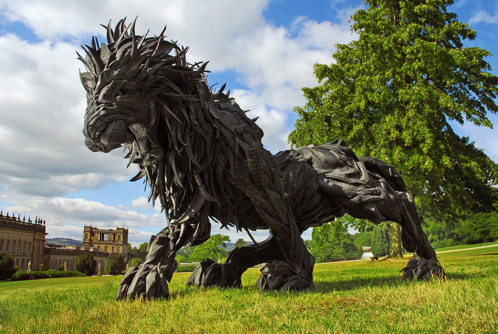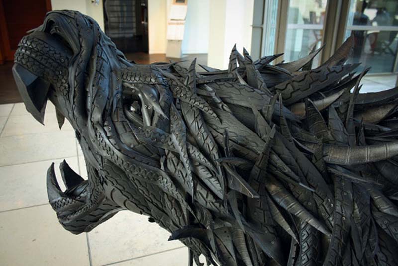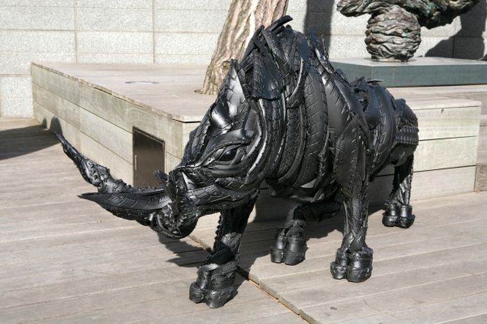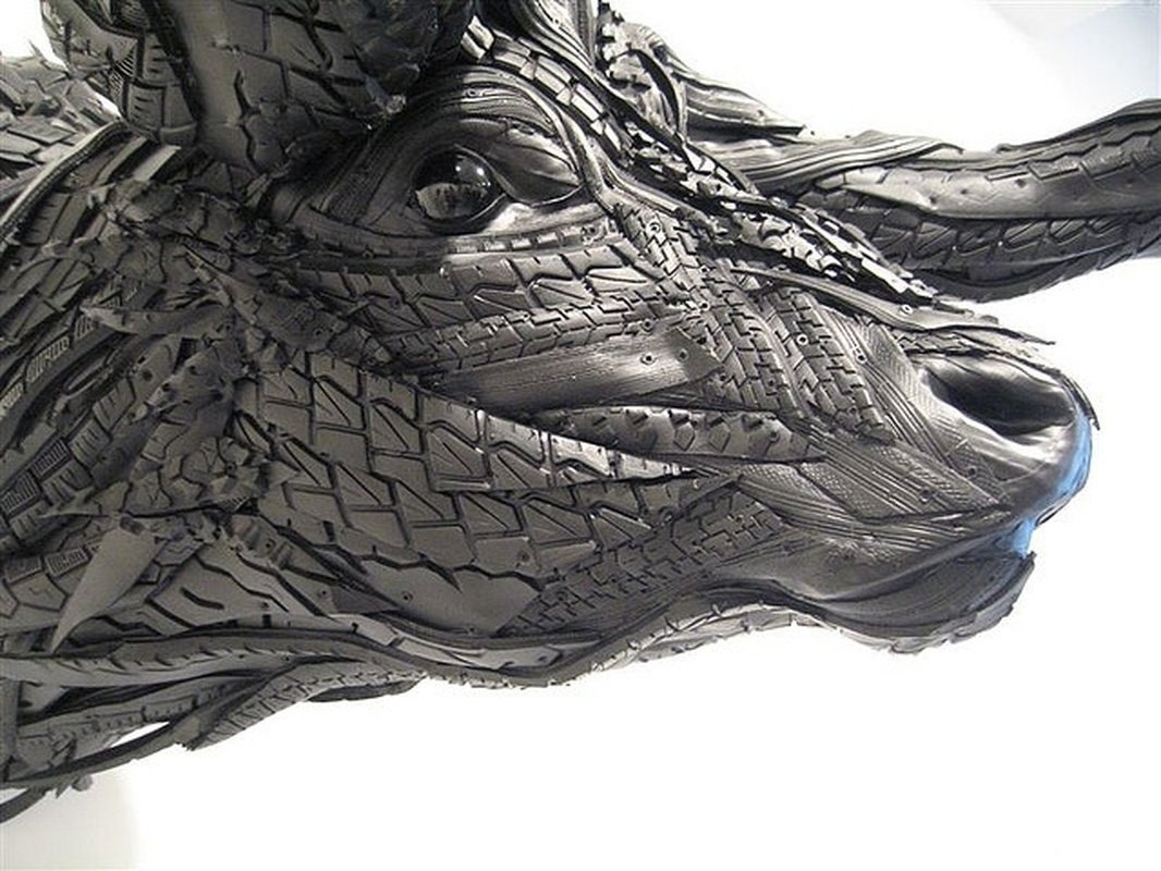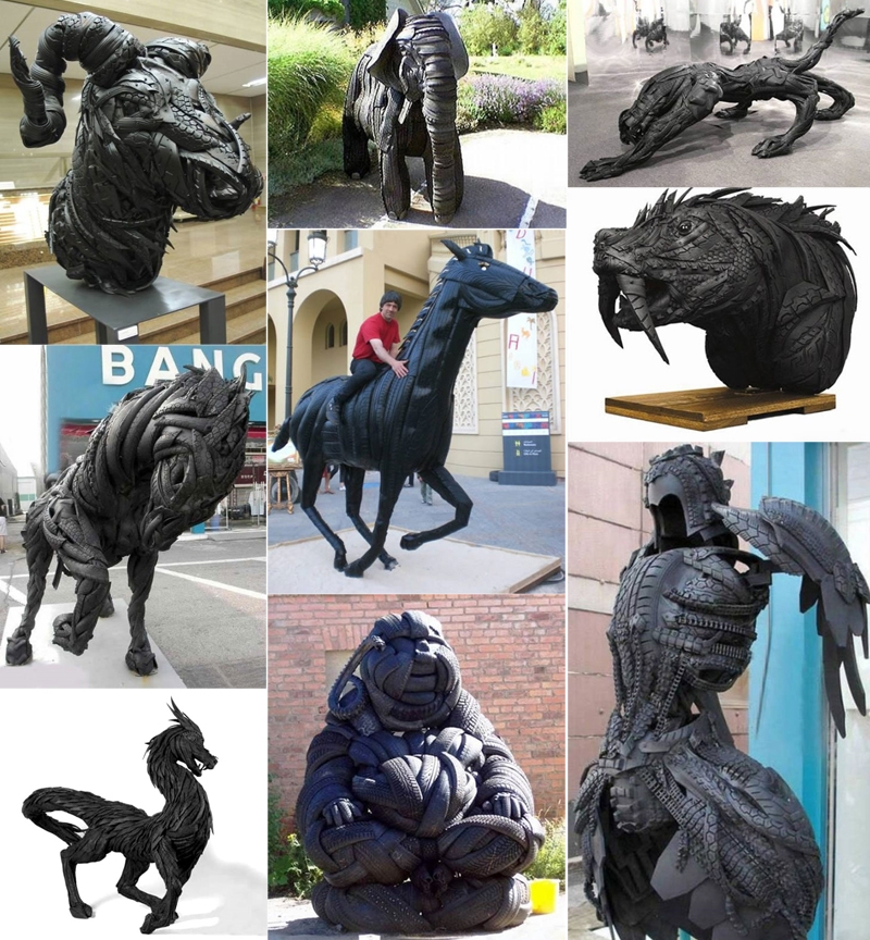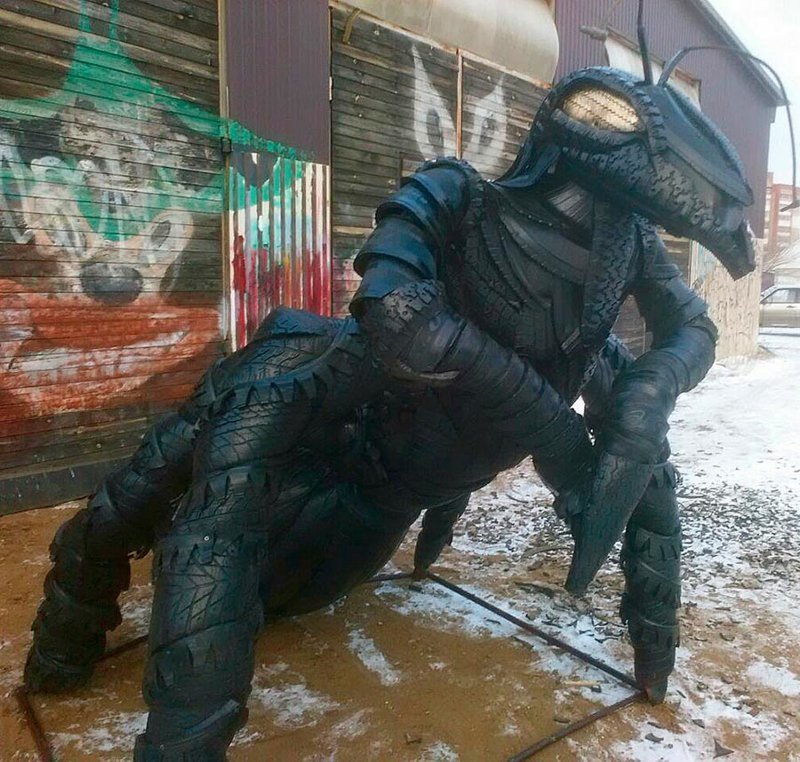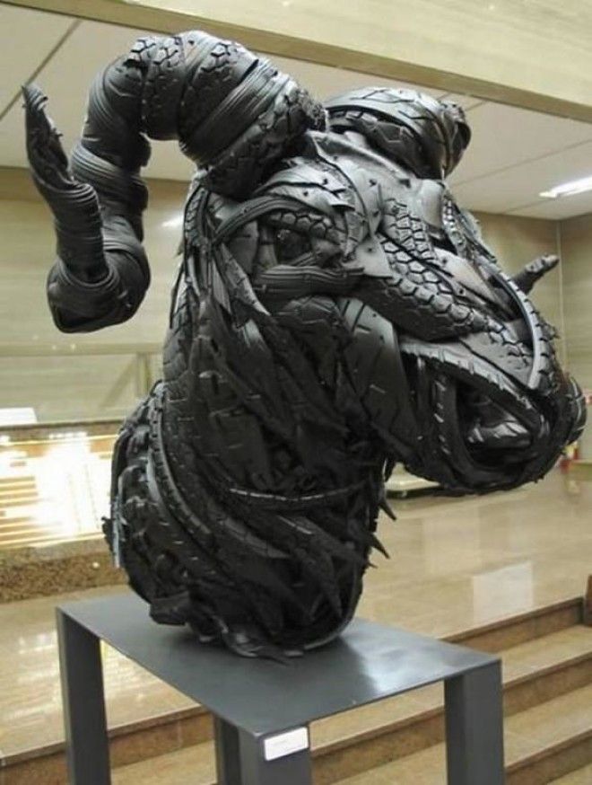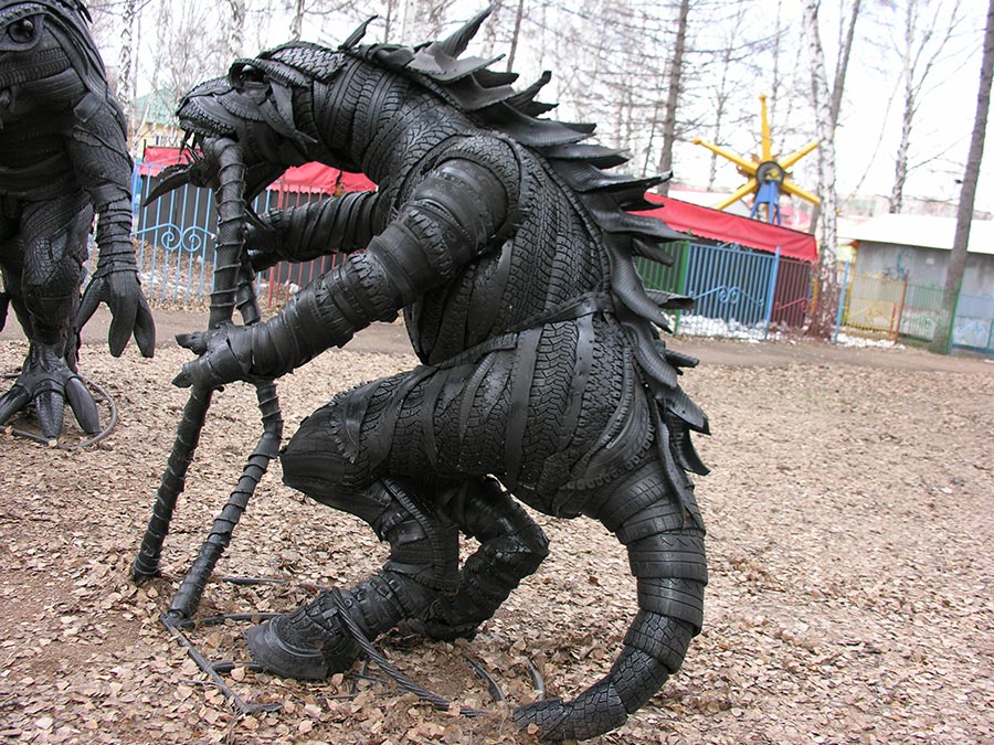 Очень красиво, талантливо и устрашающе..;))… Такие скульптуры хороши в тенистых парках или в помещениях. На открытых местах летом от нагрева резина начинает выделять ядовитые вещества и находиться рядом с такими скульптурами опасно для здоровья.