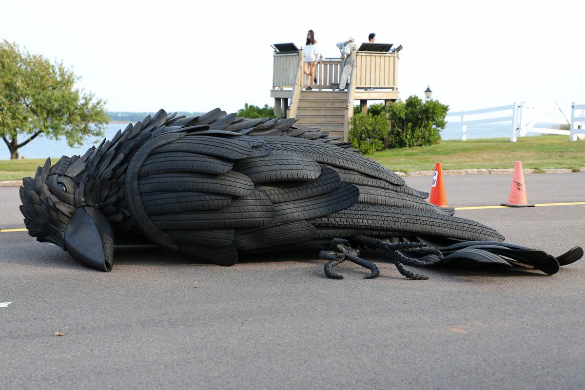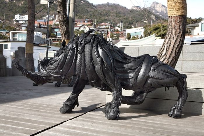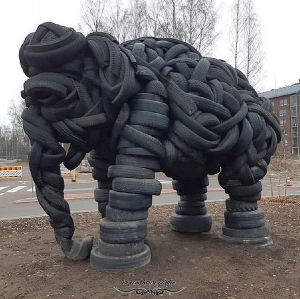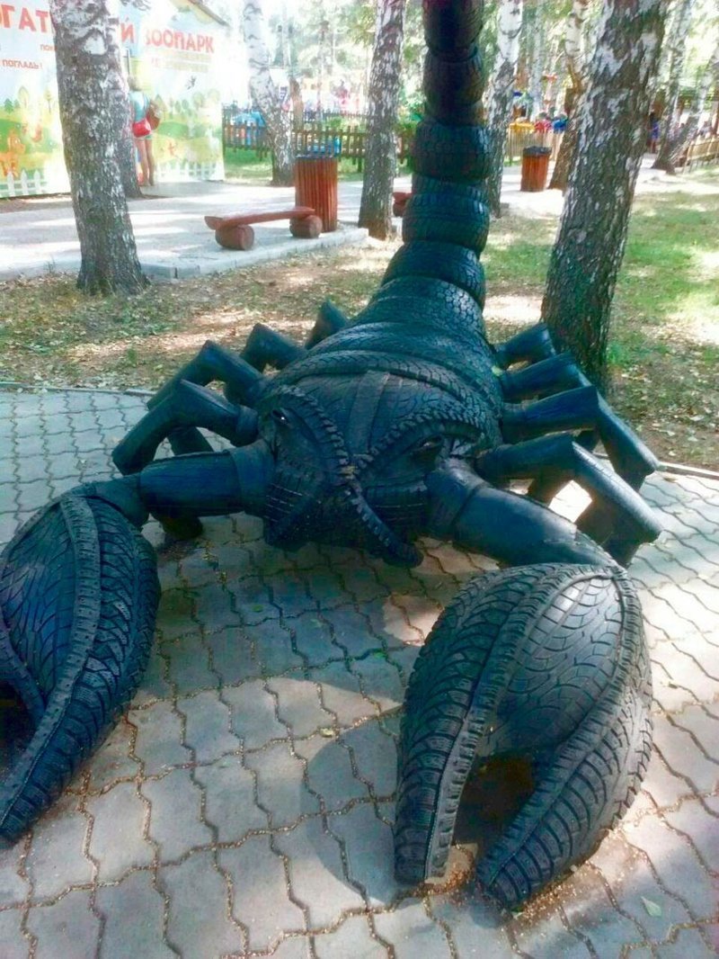 Но полюбоваться на животных, сделанных из шин, может любой.