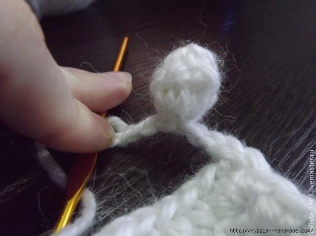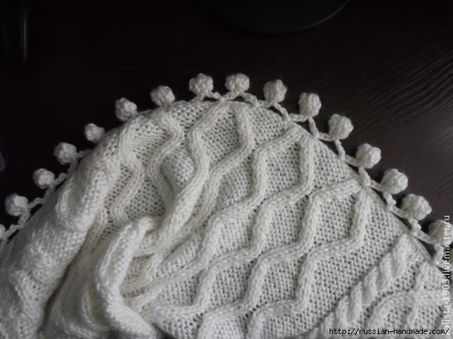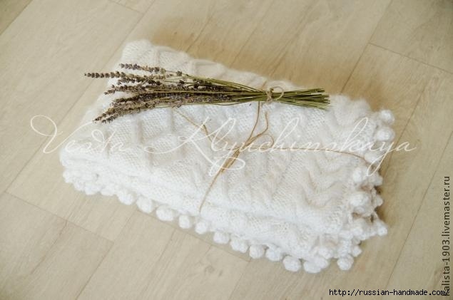Плед с помпонами: обвязка края