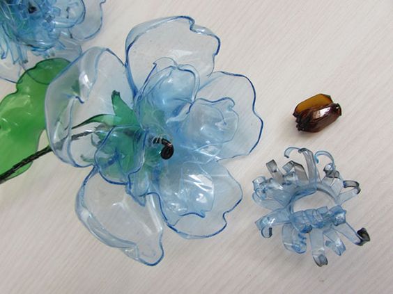 Цветы из пластиковых бутылок в этой технике хороши не только на даче, но и дома.