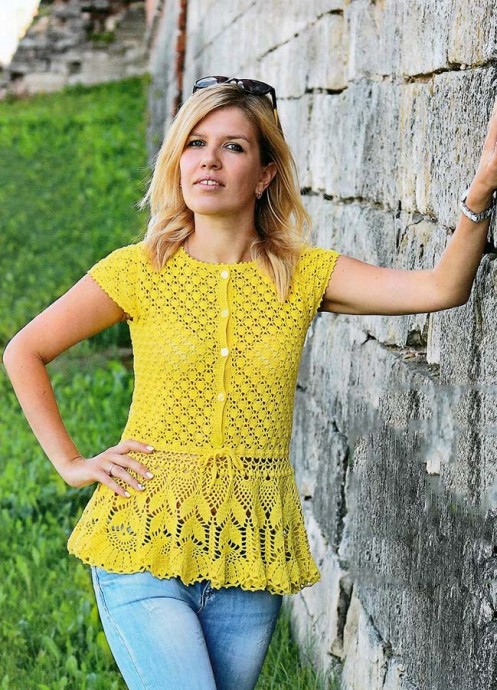Перед началом работы свяжите образец и постройте выкройку в натуральную величину. Модель вяжется снизу вверх, а баска вниз.