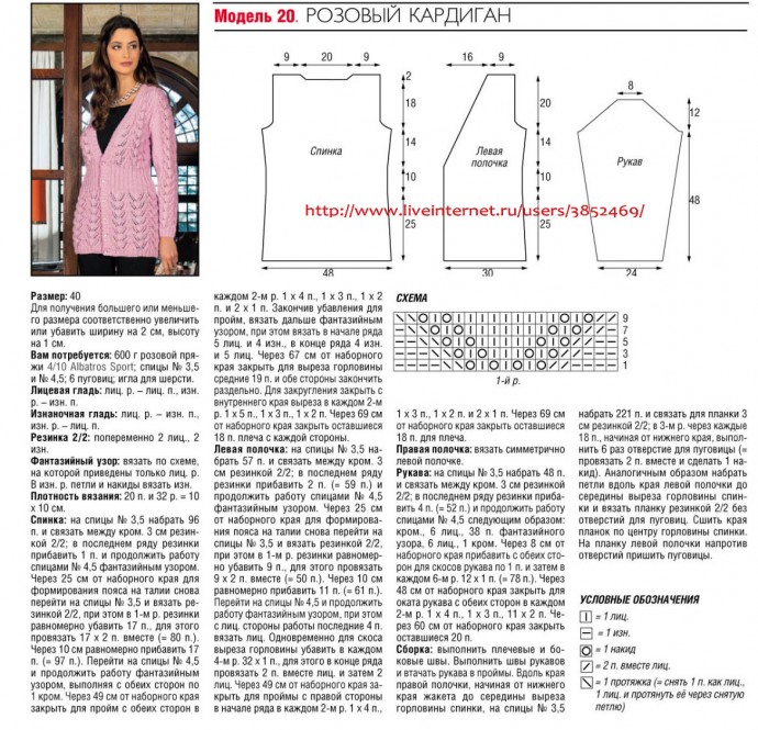 Розовый джемпер спицамиВертикальные полосы узора стройнят фигуру.