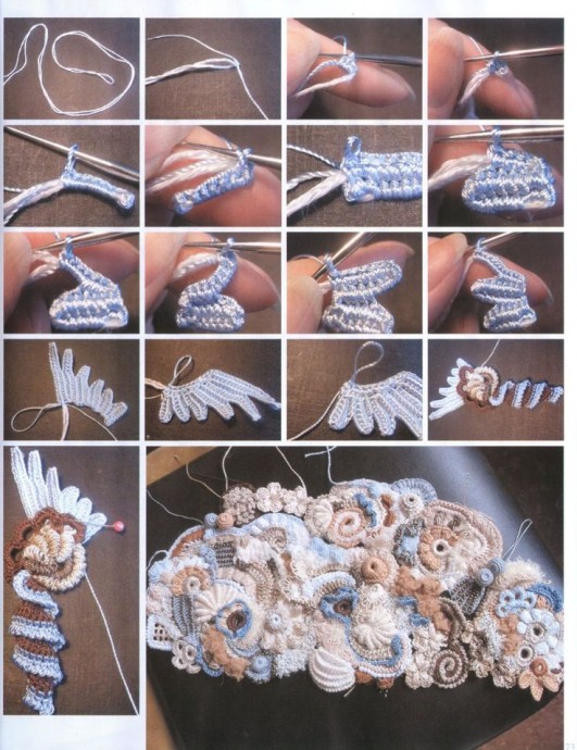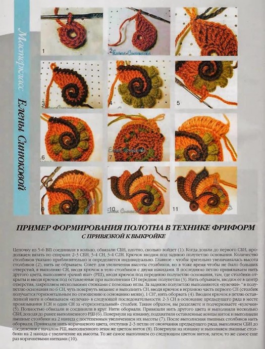 Как вязать элементы в технике фриформ
