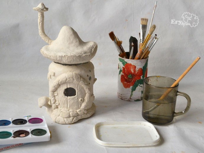 лепим сказочный "домик-мухомор"