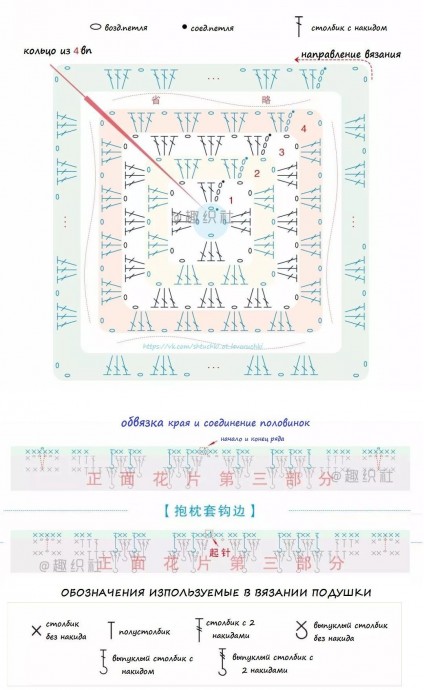 Яркий чехол на подушку крючком