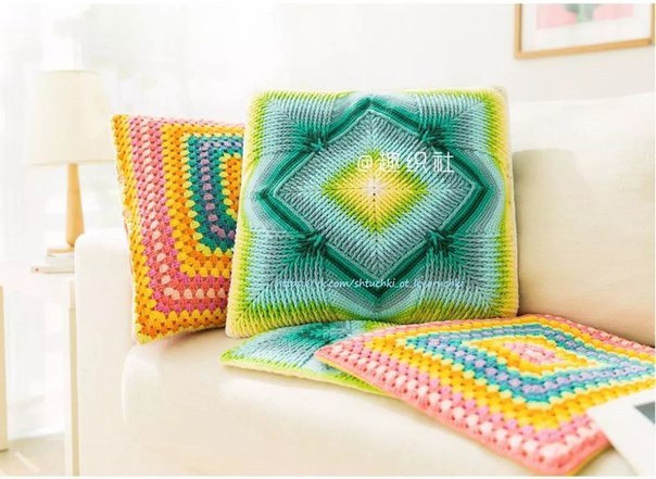 Яркий чехол на подушку крючком способен поднимать настроение с самого утра.