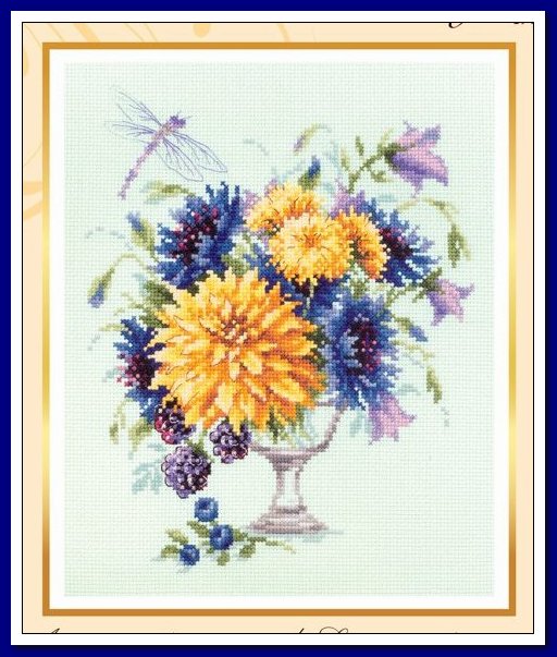 Любителям вышивки крестиком посвящается очаровательный букет в вазе.